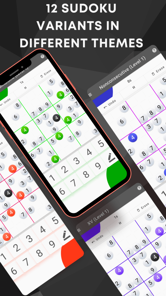 Unlimited offline sudoku puzzles with twelve variants.